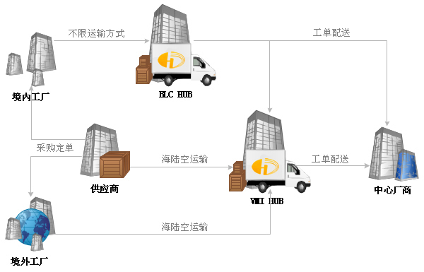 - 在不需自設倉庫的前提下為廠商提供VMI服務,滿足廠商需求和贏得訂單;